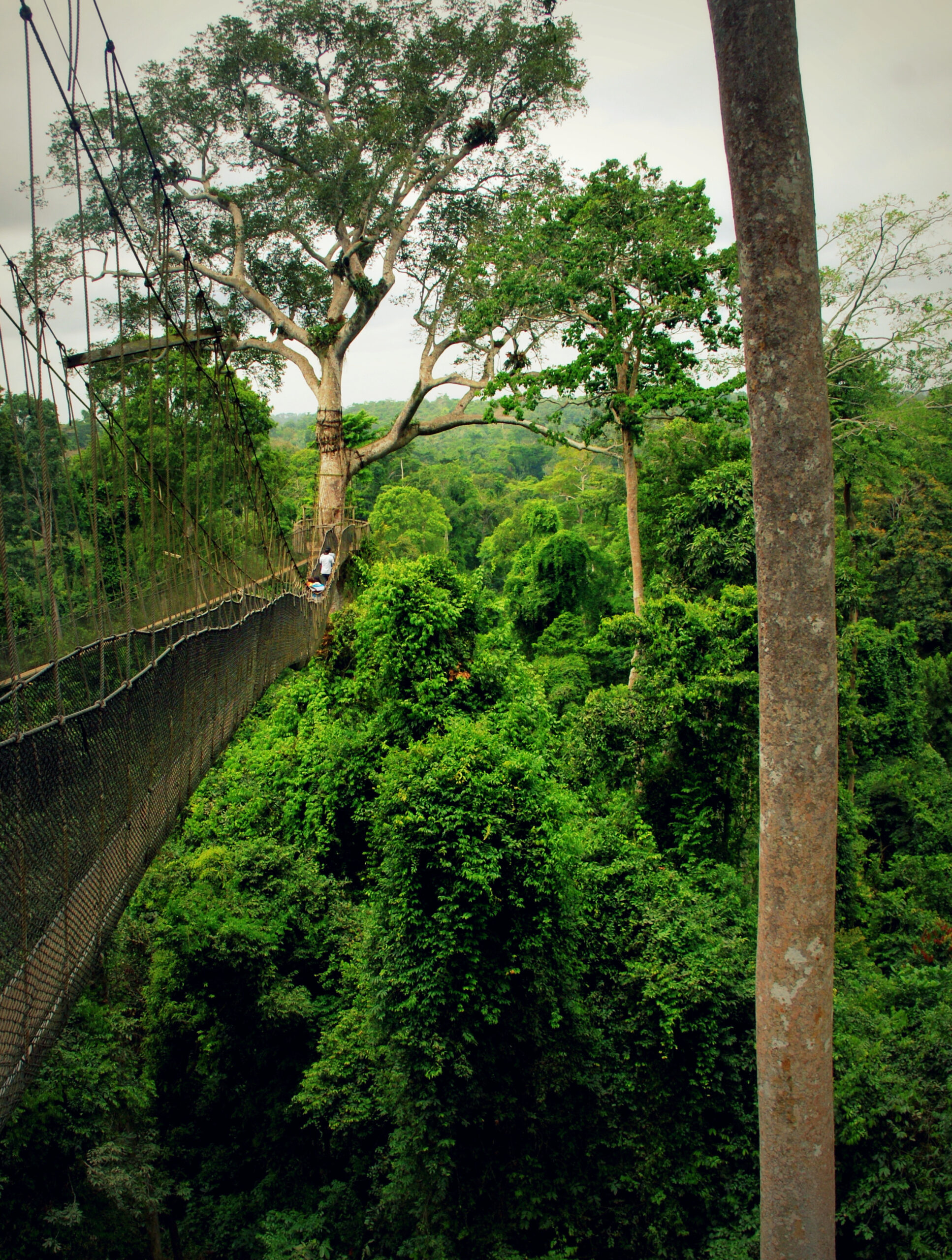 卡庫姆國家公園,位於迦納,是西非著名的生態旅遊勝地,成立於1992年,致力於保護本區獨有的熱帶雨林。公園內有一條引人注目的吊橋,懸掛於30公尺高的樹冠之上,全長350公尺,是探索森林多樣生態的絕佳方式。這裏生活著超過40種大型哺乳動物,包括濒危的非洲象、森林象和達尼安黑猩猩,以及超過300種鳥類。卡庫姆不僅是野生動物的庇護所,也見證了當地社區與自然和諧共處的努力,展現了人與自然之間可持續發展的可能性。遊客在這裡不僅可以體會撒哈拉以南非洲生物多樣性的魅力,同時也能感受到當地社群保護自然資源的堅持與熱情。