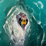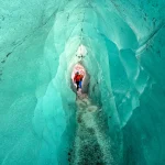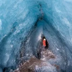 冰洞由融水在冰川內部長期沖刷形成,洞壁呈現透明而深邃的藍色。當陽光穿透冰層時,整個洞穴散發出冷冽而夢幻的光澤,使其成為冰川健行中最令人難忘的景象之一。