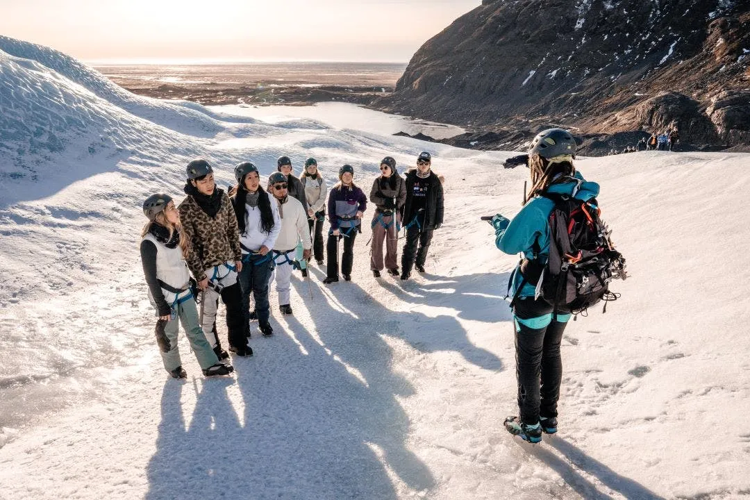 斯卡夫塔山(Skaftafell)位於瓦特納冰川國家公園(Vatnajökull National Park)內,是冰島最著名的冰川探索地點之一。這趟四小時活動將冰川健行與藍冰洞探索結合,讓旅人同時體驗冰川地貌與冰洞景觀。行程在斯卡夫塔山集合點開始。專業冰川嚮導會為旅人提供必要裝備,包括冰爪、頭盔與冰斧,並講解基本安全知識。之後乘坐接駁車前往法爾冰川(Falljökull),這是瓦特納冰川延伸而出的冰川舌,也是該區最壯觀的冰川地形之一。