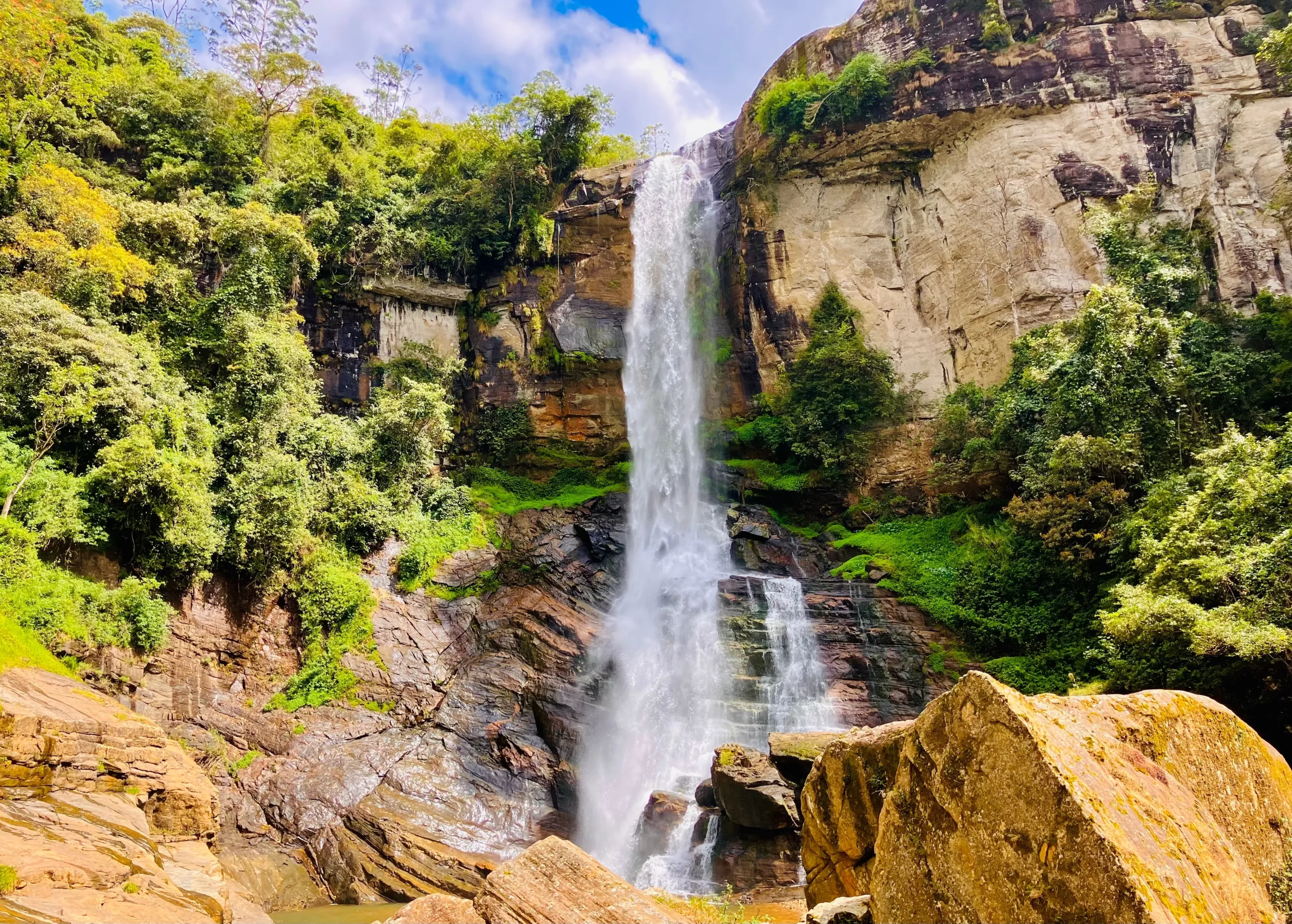 蘭博達瀑布高約109米,是斯里蘭卡最高的瀑布之一。瀑布從山谷岩壁傾瀉而下,周圍常被雲霧與熱帶植被包圍,展現高地雨林的自然氣息。