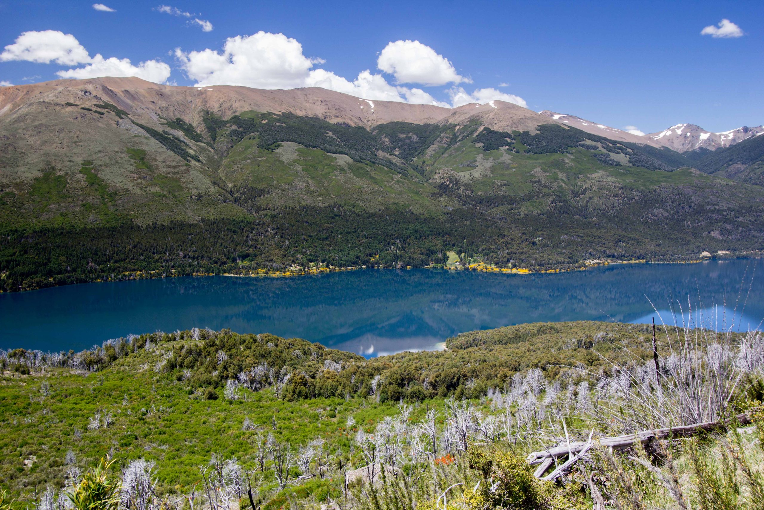 Lake Moreno位於阿根廷內格羅河省聖卡洛斯·德·巴里洛切西南約5公里,自冰河期末安第斯融冰匯成,全長約10公里最大寬度3公里,海拔764米,周邊Nahuel Huapi國家公園火山環抱至2000米峰頂,象徵巴塔哥尼亞湖區冰蝕地貌脈絡。十九世紀歐洲移民沿湖建牧場,1934年納公園後設步道與觀景台,湖水藍綠源自融雪礦物沉澱。湖泊東向巴里洛切市區,西接Llao Llao區,從北岸Puerto Pañuelo碼頭可循水位線辨識乾濕季變異。細觀包括岸邊玄武岩礫床與水草浮帶,記錄虹鱒洄游路徑;冬季冰封厚30厘米。此湖折射移民開發與原生態延續的湖岸序列。