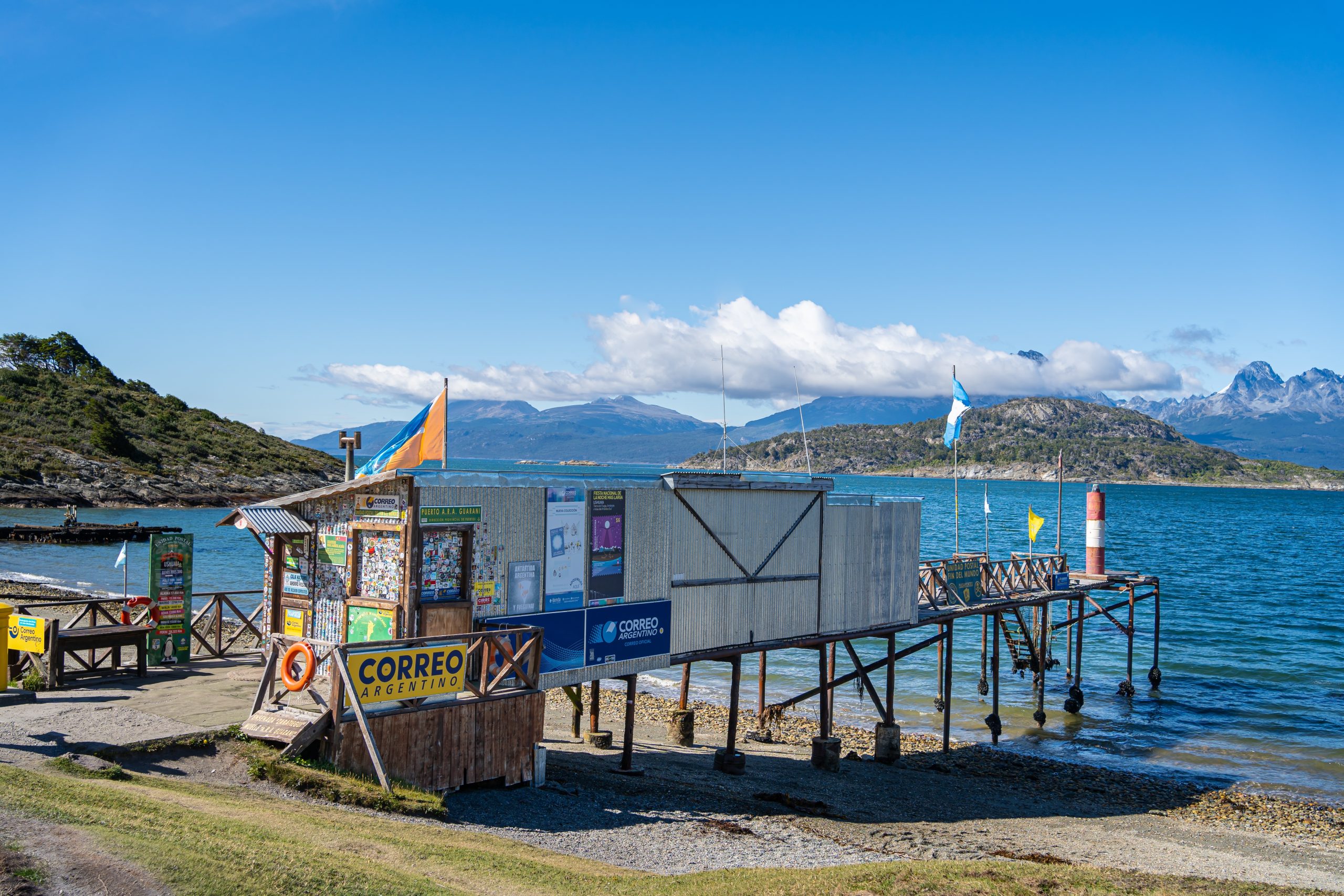 巴希亞恩塞納達灣位於比格爾海峽入口東側,自二十世紀初起成為火地島國家公園遊客中心,灣內設有世界盡頭郵局,郵戳標示「Fin del Mundo」,每年處理數萬張明信片,源於1930年代為吸引遊客而建。 灣邊步道穿越亞馬納貝殼堆積物,記錄原住民數千年漁獵遺址,觀景台俯瞰海峽水流與燈塔,冬季風暴痕跡與夏季海豹群形成季節對比。 周邊伐木遺址與南美山毛櫸林保留先驅開墾路徑,郵局建築以木板與鐵皮構成,內部郵筒與印章展示全球遊客參與的象徵儀式,將地理邊陲轉化為文化節點。