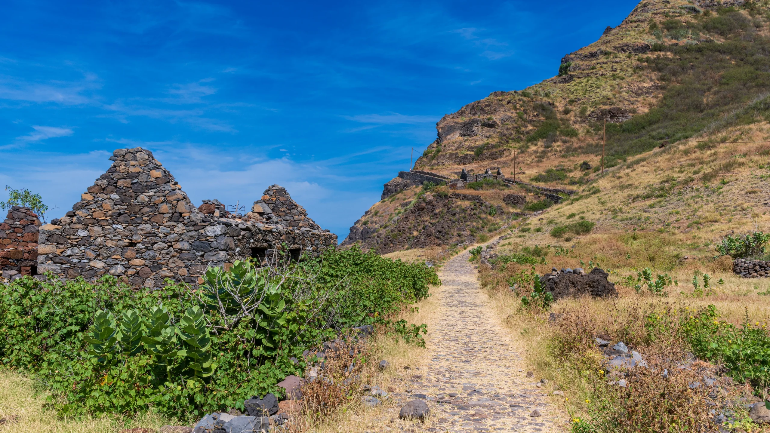 在佛得角的聖安唐島,行程從海濱漁村蓬塔杜索爾展開,這裡的彩色房屋點綴著海岸線。沿著懸崖邊的道路行進,海洋的壯闊景致如畫般展開。穿越蜿蜒的山路,深谷環繞,抵達被《國家地理》譽為全球十大美景村莊之一的豐塔伊尼亞斯。這裡的村落如同懸掛在山巔,視野開闊,令人屏息。