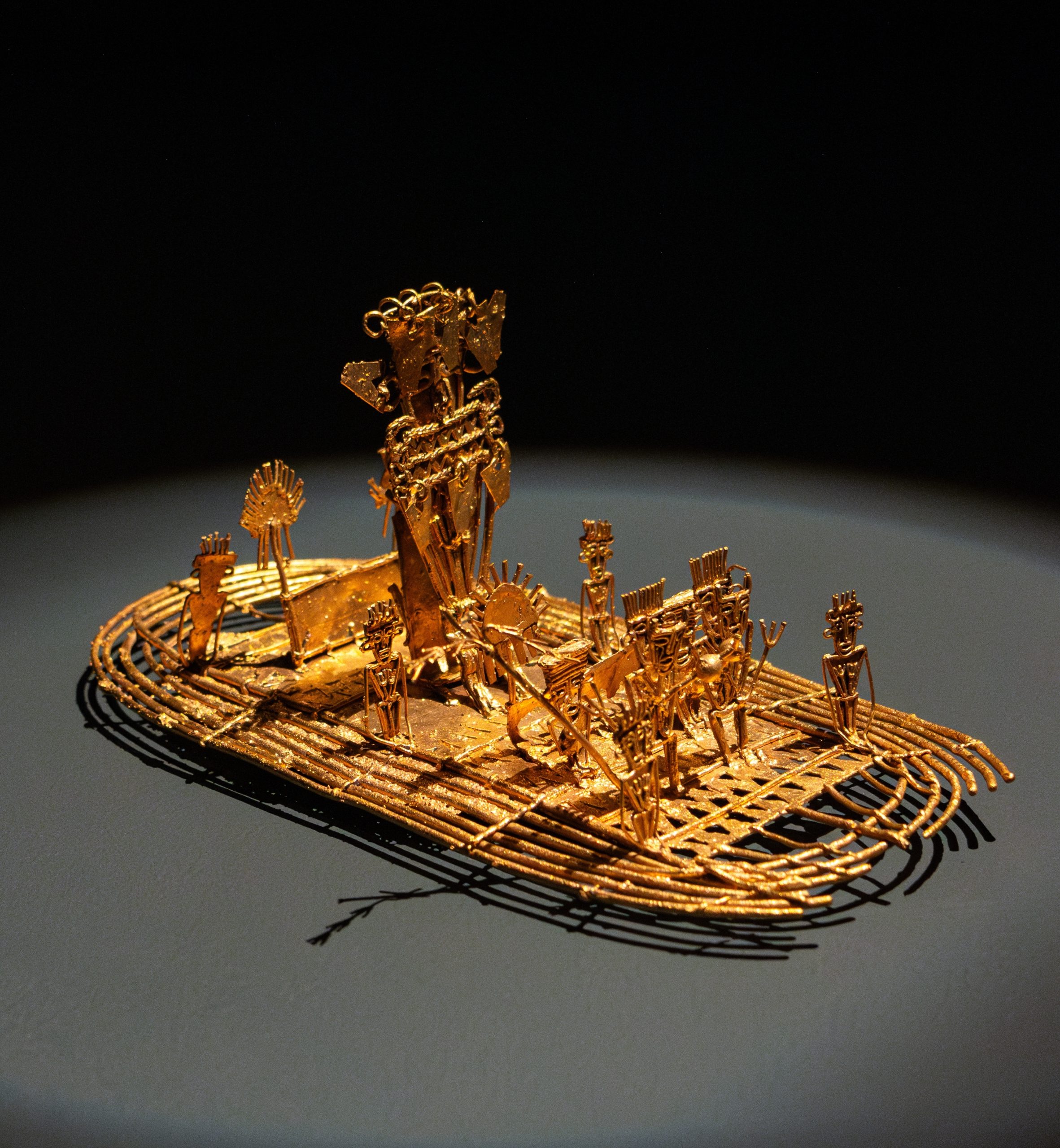 金博物館建於一九三九年,位聖坦德廣場東側,收藏五萬五千件前哥倫布時期穆伊斯卡黃金工藝品,佔地三千平方米,使用強化玻璃展櫃與恆溫控制。一九四○年代由哥倫比亞銀行資助,一九九二年擴建三層展廳,展出前一千年穆伊斯卡太陽盤與獵豹人像,重四公斤,象徵查查尼伊大神崇拜與貿易網絡。地理居老城中心,海拔二千六百米,空間環以中庭水景,視線連聖弗朗西斯科教堂。細察展品,可見鍛造焊痕與碳定年前八百年數據,牆圖解穆伊斯卡冶金技術,記錄西班牙征服前社會階層與黃金掠奪脈絡。