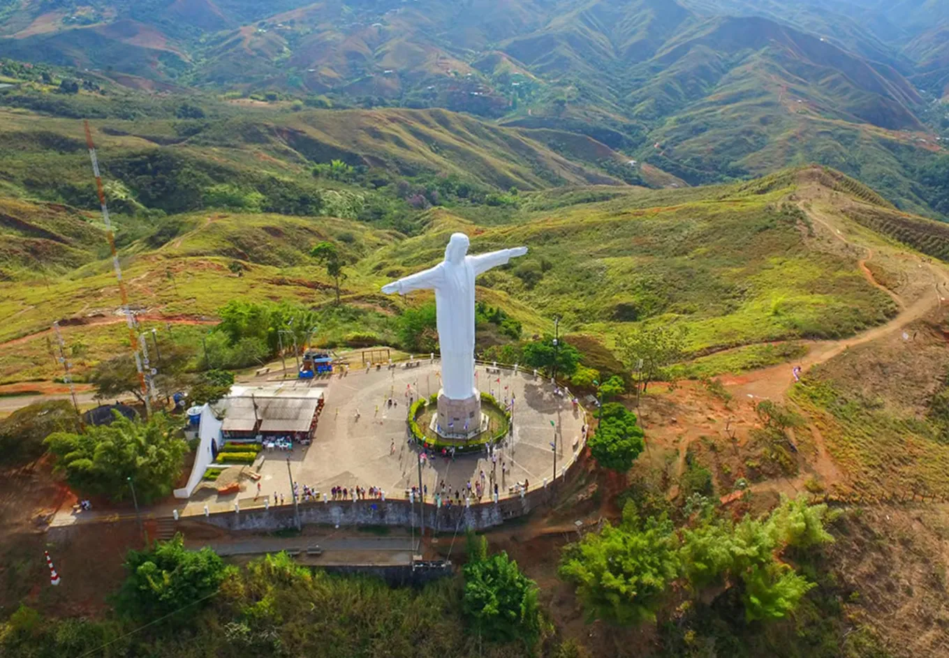 在哥倫比亞的西南部,聖地亞哥·德·卡利以其獨特的地理位置和豐富的文化底蘊吸引著旅人。這座城市被安第斯山脈環抱,擁有多樣的自然景觀和豐富的歷史遺產。行程從著名的基督君王雕像開始,這座高達26米的雕像矗立在山頂,俯瞰整個城市,提供了壯觀的全景視野。前往市中心,這裡是卡利的心臟地帶,擁有眾多歷史地標和文化遺址。