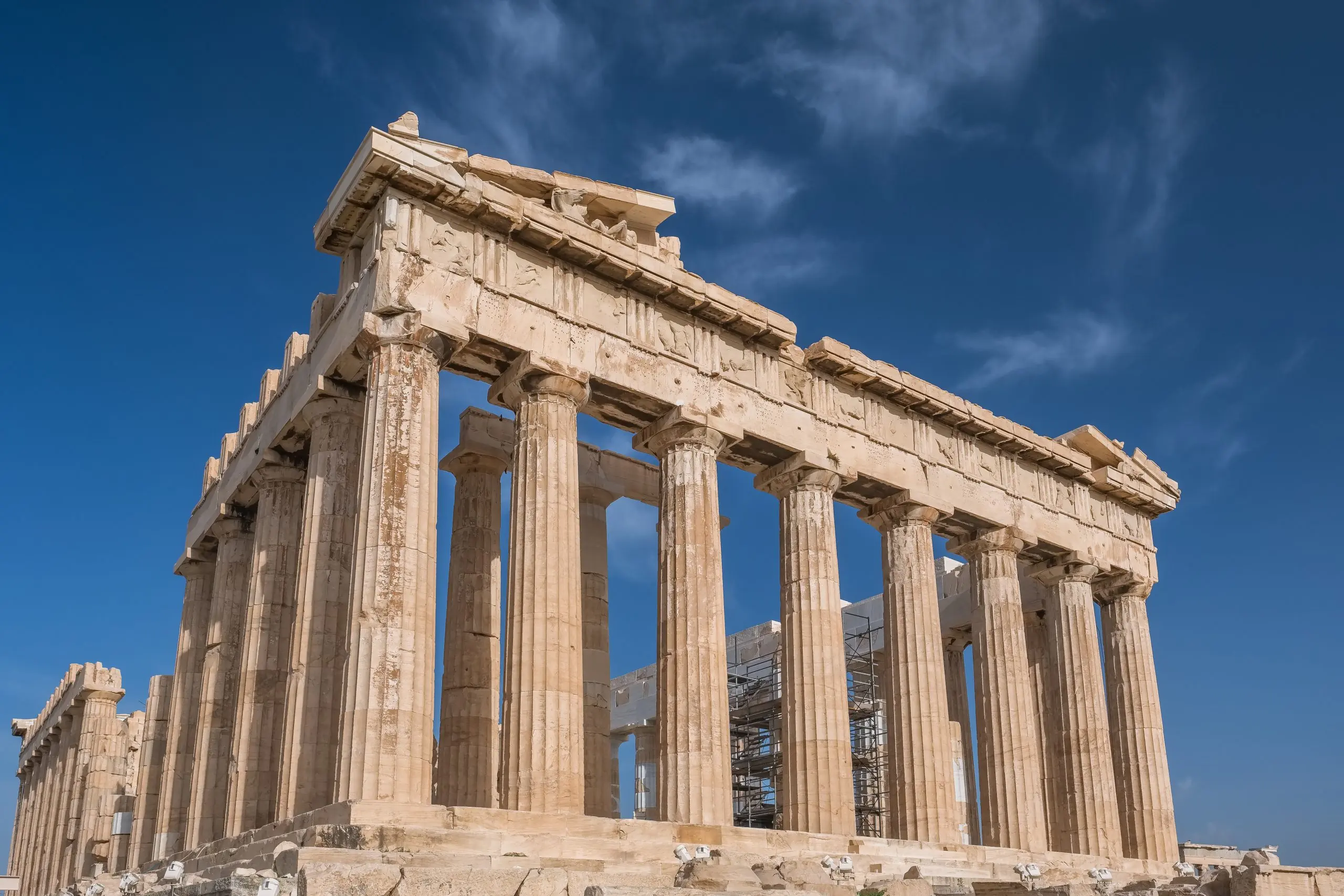建於公元前五世紀,是古希臘獻給處女神雅典娜的主殿。以多立克柱式為主,比例嚴謹精確,被視為古典建築完美典範,體現希臘人對秩序與和諧的追求。