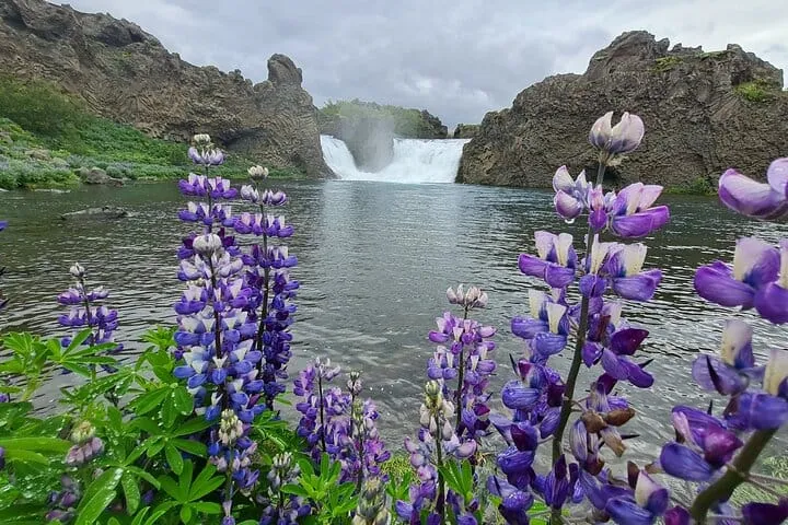 希亞爾帕瀑布位於火山赫克拉(Hekla Volcano)山影之下,是進入冰島高地的重要地標。兩條河流——Fossá 與 Þjórsá——在此交會並傾瀉入同一水潭,瀑布周圍整齊排列的玄武岩柱形成極具幾何感的自然景觀。
