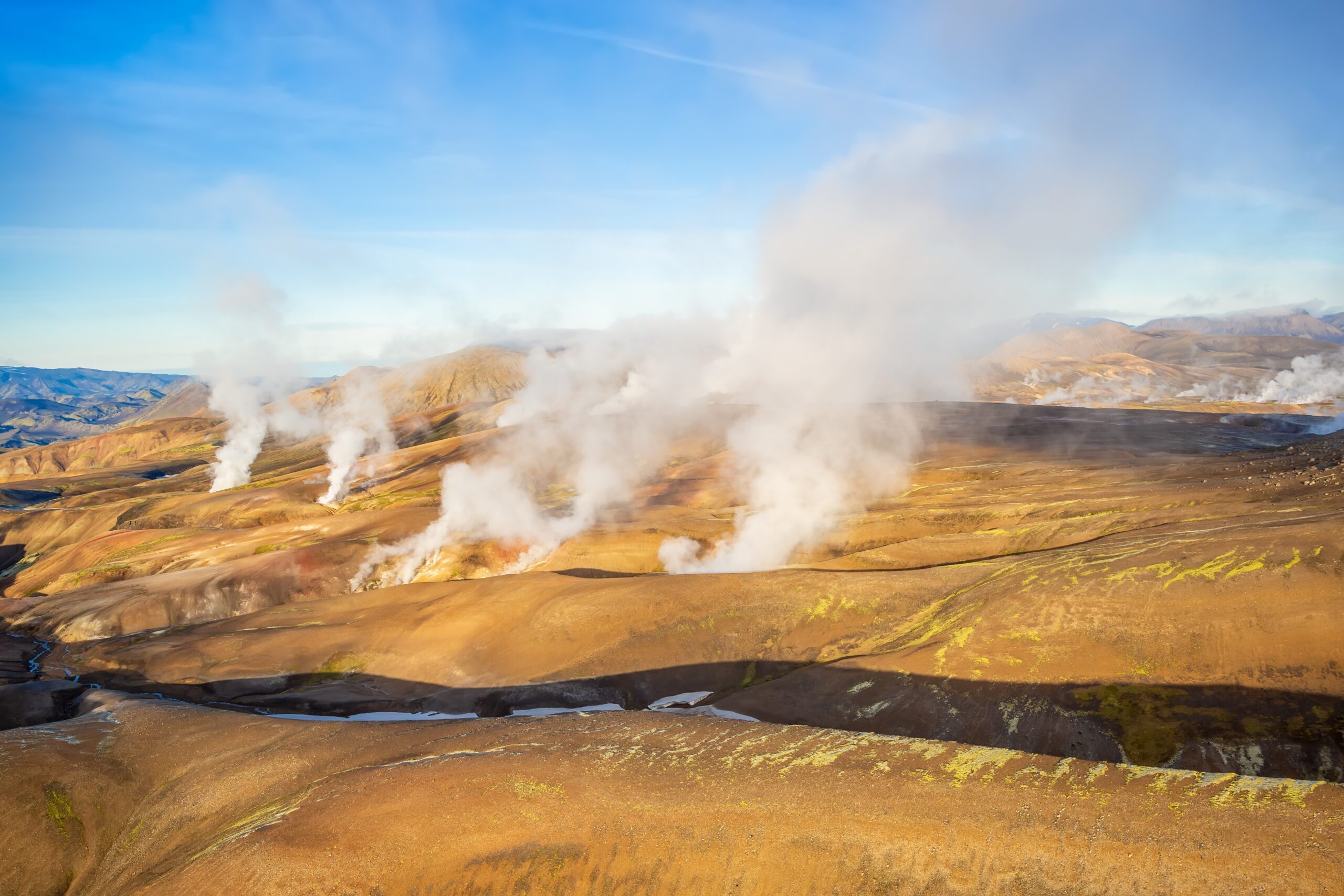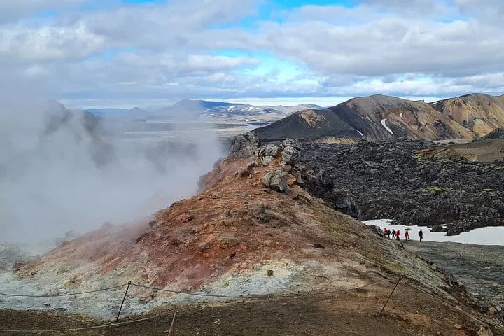 蘭德曼納勞卡是冰島最著名的高地健行區之一,以色彩斑斕的流紋岩山脈聞名。地熱活動與礦物沉積讓山體呈現橙色、黃色與綠色層次,徒步其中宛如行走在另一個星球;行程結束後亦可在天然溫泉中放鬆。