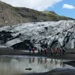 前往南岸,於塞里雅蘭瀑布可步行至瀑布後方觀景;斯科加瀑布落差約60公尺,沿階梯可登至頂端俯瞰海岸平原。隨後於冰川支流(如Sólheimajökull)進行約1.5小時冰川健行,由專業嚮導帶領並配備安全裝備(頭盔、冰爪、冰斧),了解冰川結構與地貌演變。
