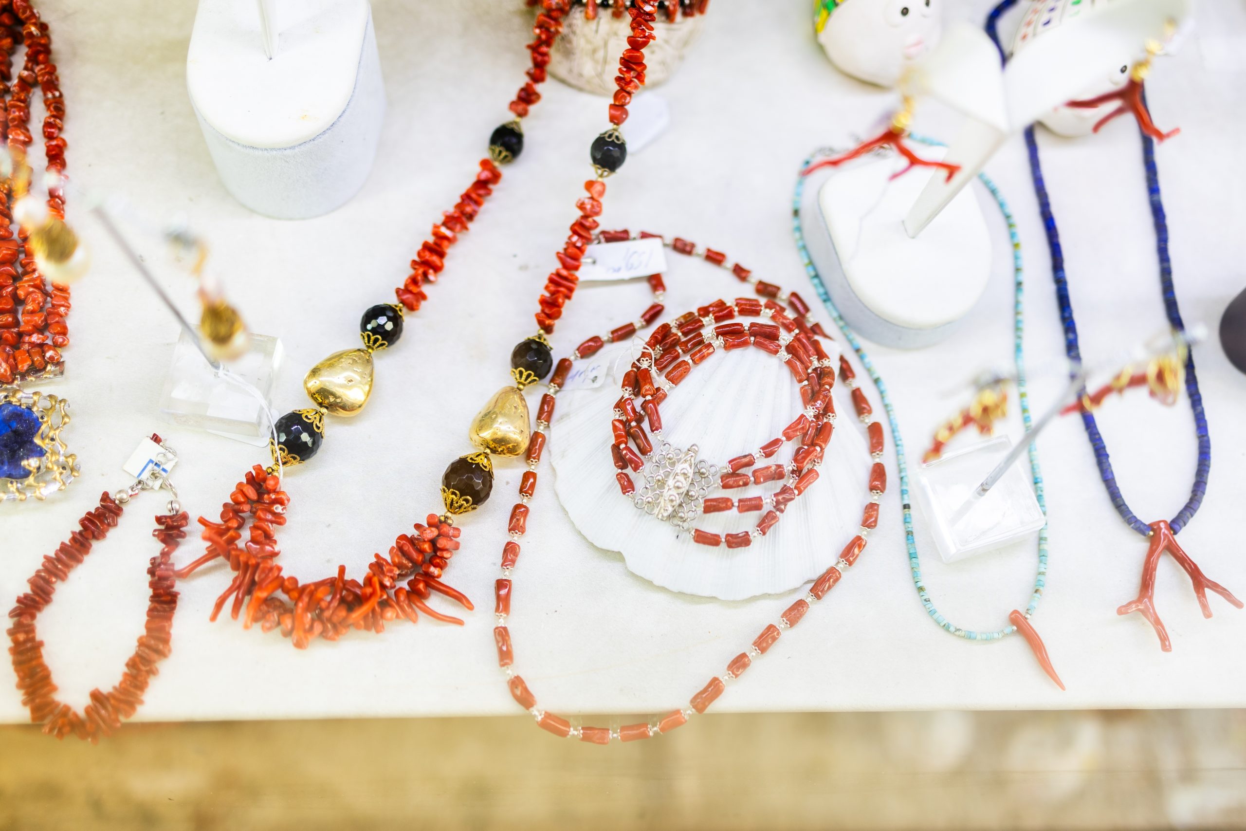 手工珊瑚飾品興起於十八世紀那不勒斯灣區,自托斯卡納漁民採紅珊瑚Corallium rubrum起,埃爾科拉諾工坊以銀座鑽孔串珠直徑2至10毫米,十九世紀波旁王朝贊助出口歐洲,年產逾500件,象徵地中海生物資源與宮廷飾品脈絡。珊瑚源台伯河口深海60米,加工分磨光與雕刻,成品耳環項鍊重約50克。工坊南向海灣,視線平行砥石輪至成品櫃,從珠孔可循光澤層辨識拋光序。細觀包括座銀鏽蝕與珊瑚髓紋,記錄海水礦化;維蘇威灰嵌入飾。此工藝展現坎帕尼亞海洋經濟與珠寶序列的細膩韻律。