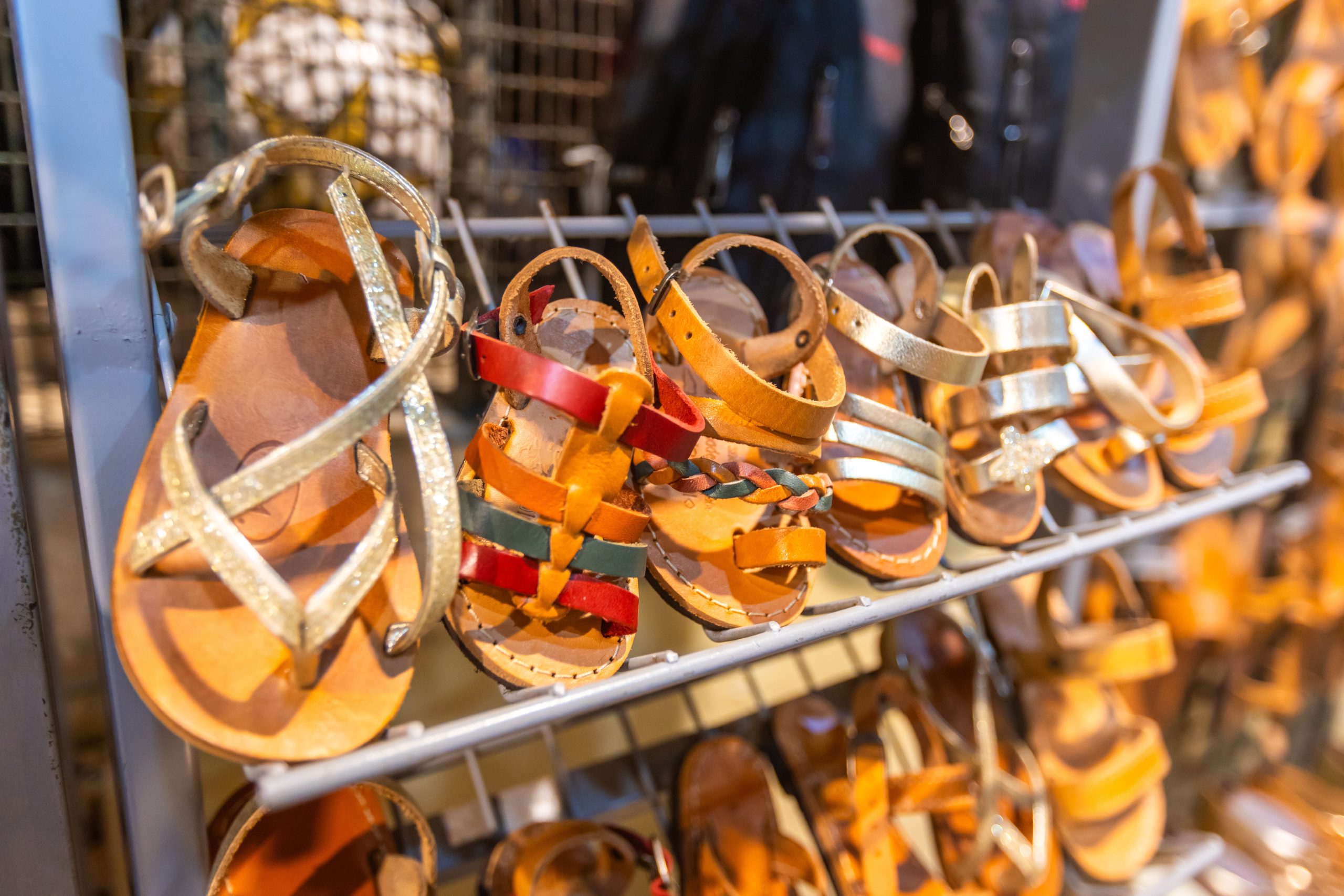 龐貝手工涼鞋復刻自公元前一世紀埃爾科拉諾與龐貝壁畫,自維蘇威爆發79年保存遺址起,以牛皮底加軟木塞繫帶,鞋型分開放式與綁帶式長12至25厘米,象徵羅馬貴族夏季足部裝飾脈絡。埃爾科拉諾工匠沿用火山灰染色與手工縫線12道,直徑鞋圈約20厘米,材質耐海濱鹽腐。製作檯面東向遺址廣場,視線穿窗至競技場,從鞋帶可辨扭結序列與蠟封痕。細觀包括皮紋仿古壓模與底釘定位,記錄維修傳統;奧斯坎語碑文記公元前二世紀鞋肆。此涼鞋記錄埃爾科拉諾都市生活與工藝延續的足跡層次。