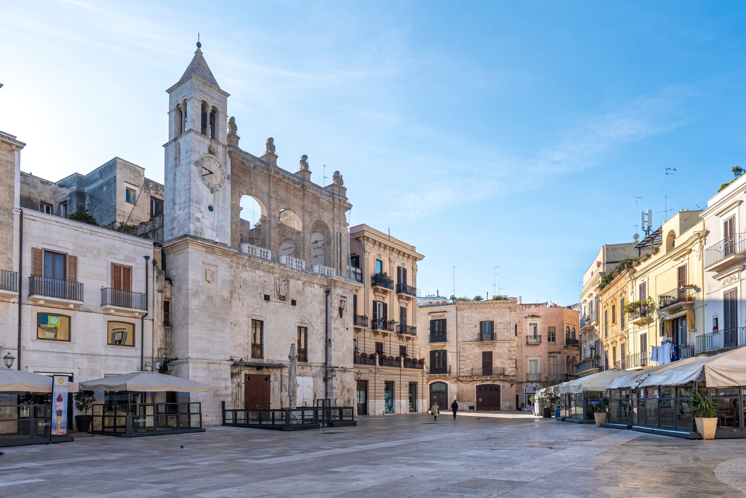 議事廣場坐落馬泰拉古城核心,原為中世紀市政廳前庭,16世紀西班牙維 цере統治下改建為貴族議事廳Sedile,廣場長60米寬40米,地面凝灰岩鋪就微拱排水。中央鐘樓建於1665年,高28米,方形基座飾阿拉貢徽章與獅子浮雕,象徵封建權力。北側Sedile宮長面拱廊支撐,上層陽台寬8米用於宣告法令,南接聖奧古斯丁教堂1520年代立面。文化上為稅收與審判中心,牆碑記錄1711年瘟疫隔離令。地理位置嵌入城牆內側,海拔約390米,東望主教座堂,西連Via Duomo,視線沿柱廊延伸至谷底。可觀察細節包括鐘樓基石嵌銘文列歷任總督,廣場角柱頭資本刻商標,此廣場體現從諾曼自治到絕對君主的行政脈絡。