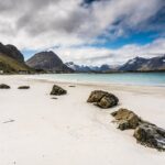 極北沙灘漫步:在高山環抱中,於白沙灘上賞析令人屏息的北極天堂風光。